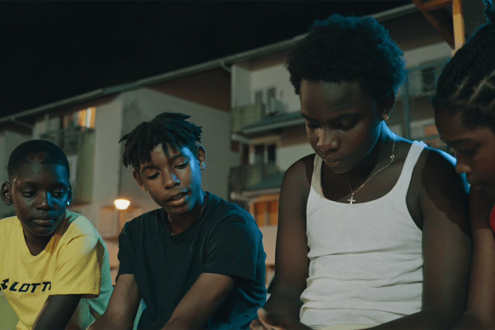 Several interludes—one of which provides the film with a non-conclusive feeling sort of ending—ignore questions of hybridity altogether and take the film out of an identifiable reality by drifting into something more reminiscent of a dream logic. All shot in an aquamarine blue night light that looks almost like the hue used in Hype Williams’ Belly (1998), these sequences feature a group of men, Yannick among them, speeding on motorbikes in slow-motion. Set to the liltingly ethereal tones of the Floating Points, Pharoah Sanders, and the London Symphony Orchestra collaborative project, the combination of symphonic music and hyper-glossy imagery should feel overwrought, but, due perhaps to the rest of the film’s relative restraint, it seems a worthwhile tonal departure, cathartic in its drift towards the interstitial space between dreams and nightmares. As a conclusion, despite feeling familiar, it is successful because it is compelling and confident. Men on motorcycles are being swallowed by an all-encompassing blue darkness. A filmmaker in charge of the elements is taking you somewhere. Maxime Jean-Baptiste is assured in his vision.