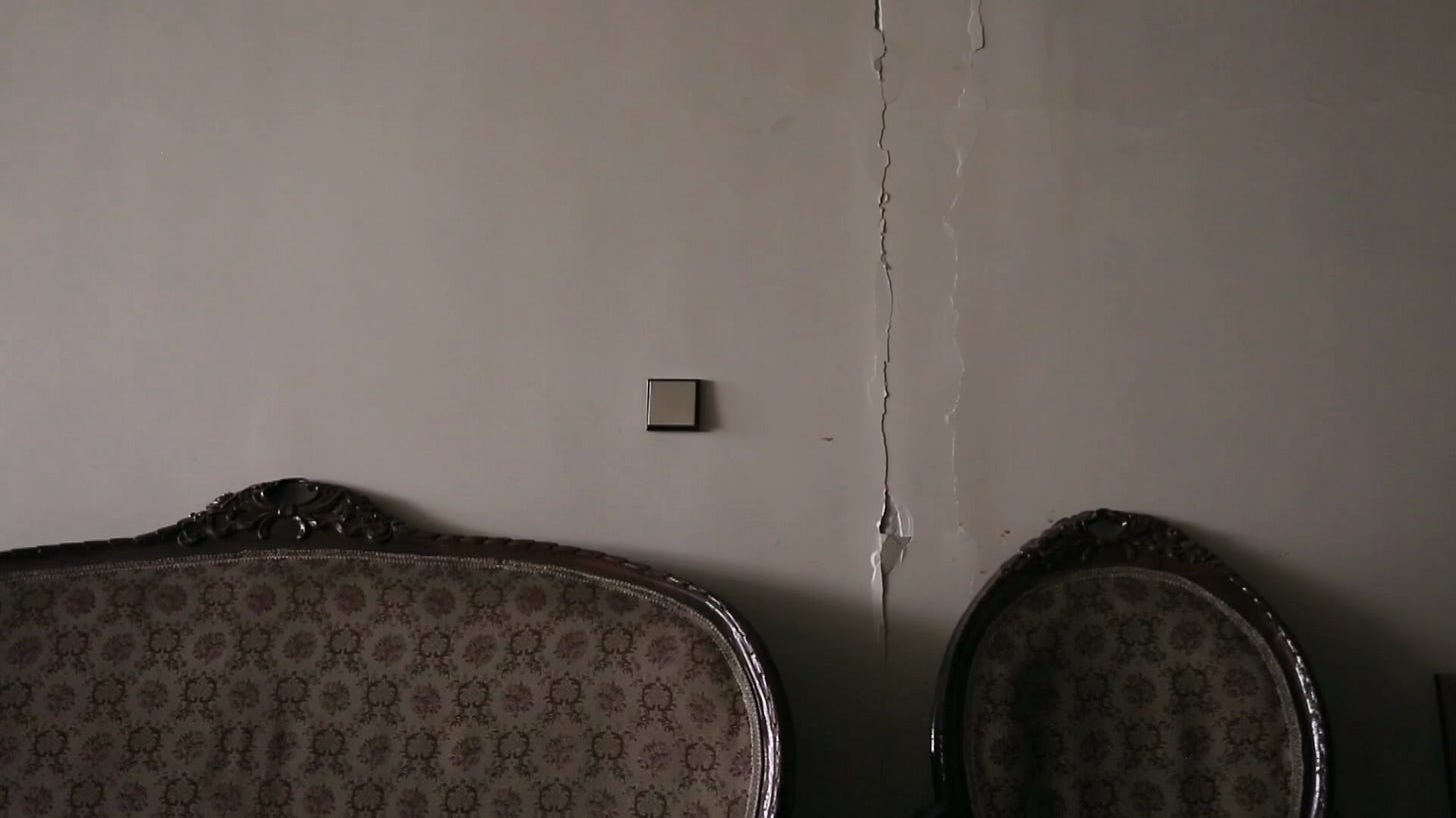 Past Future Continuous starts in a similar fashion to how The Vanishing Point does, with rainfall seen from inside a home that is dilapidated in a manner that suggests memories hidden behind the plaster that patches the cracked storied walls. In a static shot, we see a shattered window that looks over a rocky landscape of tower blocks with snow-covered mountaintops behind them. On the windowsill, among the glass shards, rests a dark feather and what looks like a dead bird. A poem is read aloud that speaks of a “dark city” and “two windows that await” a “painful return,” before thunder breaks and a piano track kicks in, triggering a fade-to-black and the film’s title card. As with The Vanishing Point, this introduction serves to set the mood and embed a melancholic tone that persists long after it the film begins in earnest, switching to the security camera footage as Maryam introduces the conceit of the film, explaining her exile and how with the installation of the webcams she hopes to achieve two things: a means of virtually “returning home” and keeping her octogenarian parents “alive with her gaze.”